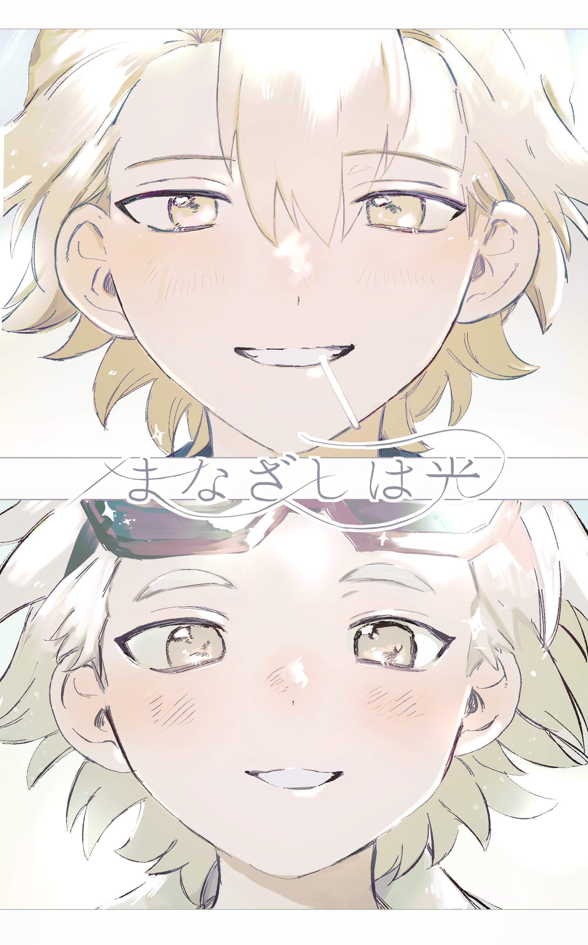 wane (ruki), royal guard (ragnarok online), ragnarok online, commentary request, 1boy, arm up, black border, black shirt, blonde hair, blue eyes, border, looking at viewer, lying, male focus, no armor, on back, shirt, short hair, smile, solo, upper body