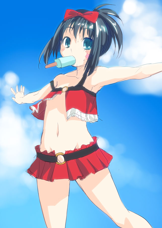 00s1girlarmpitsblack hairblushbowfemale focusflapper shirtflat chestfoodhair ribbonloliminiskirtmouth holdnaveloutstretched armsphallic symbolpopsiclerevealing clothesribbonsexually suggestiveshirtskirtsolospread arms