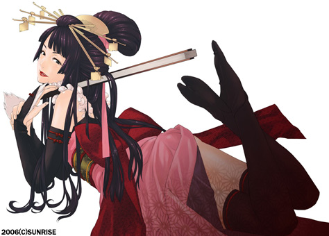 00s1girl2006bare shouldersblack eyesblack hairblack thighhighsblunt bangsbridal gauntletscombcrossed anklesfemale focusfolding fanhair ornamenthair stickhand fanjapanese clotheskimonolegs uplipsticklong hairlooking at viewerlooking backlyingmakeupno shoesoiranon stomachparted lipsred lipssimple backgroundsmilesolotabithighhighswhite background