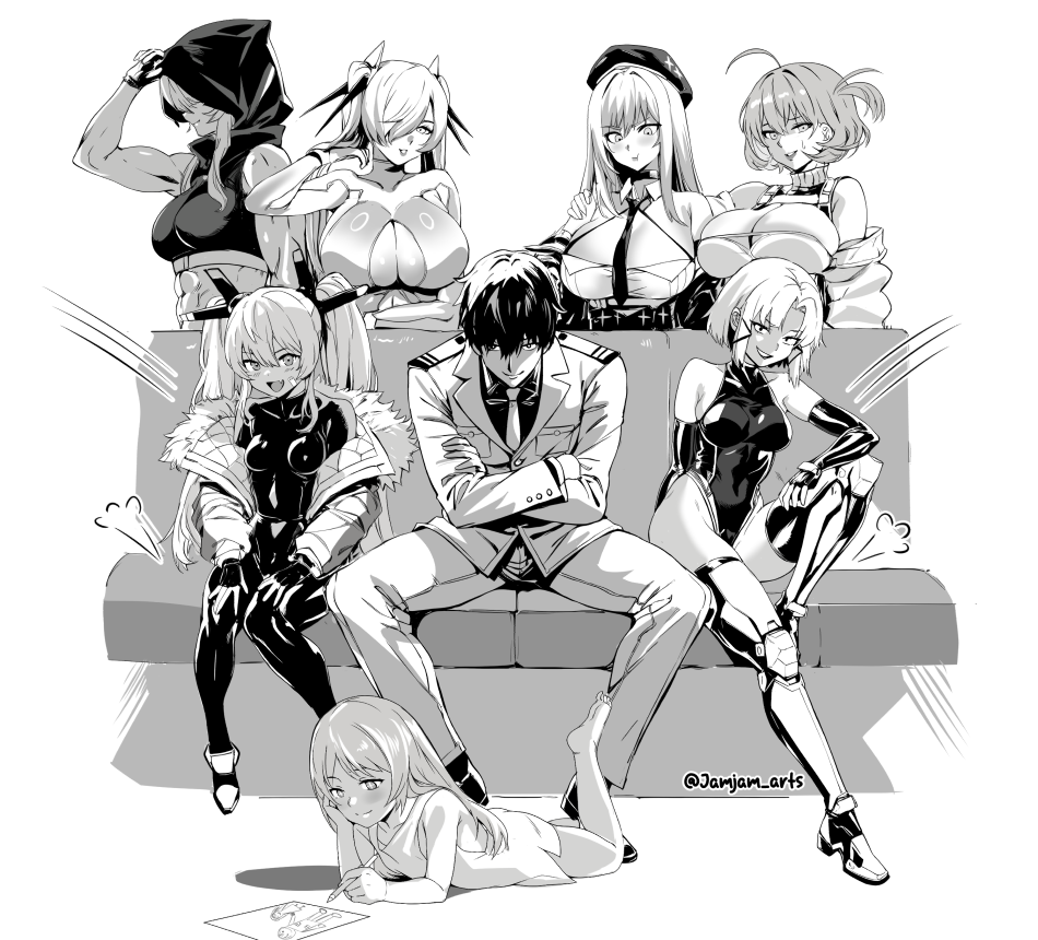1boy6+girlsabsahogearm warmersbandaidbandaid on cheekbandaid on facebare shouldersblack bodysuitblack chokerblack leotardblushbodysuitbreastsbroken maskchokercleavagecloakclothing cutoutcoatfangfur trimfur-trimmed coatgloveshair over eyeshair over one eyeharemheterohighleghighleg leotardhoodhooded cloakhospital gownjacketlarge breastsleg armorleg cutoutleotardlong hairlooking at viewermaskmilitary jacketmilitary uniformmonochromemultiple girlsnavel cutoutnecktieofficial alternate costumeofficial alternate designone eye coveredopen mouthsee-through bodysuitsee-through clothesshort hairsidelockssimple backgroundsingle arm warmersittingsmilestar (symbol)star-shaped pupilssymbol-shaped pupilstwintailsvery long hairwhite backgroundwhite coatwhite hair