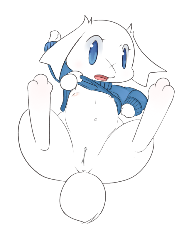 anusblue eyesbottomlessclothedclothingdisembodied handfemaleFlag for Deletionhalf-dressedlagomorphlooking at viewerlyingmammalnavelnipplesopen mouthshirtshirt liftsolotonguevideo gameszaki