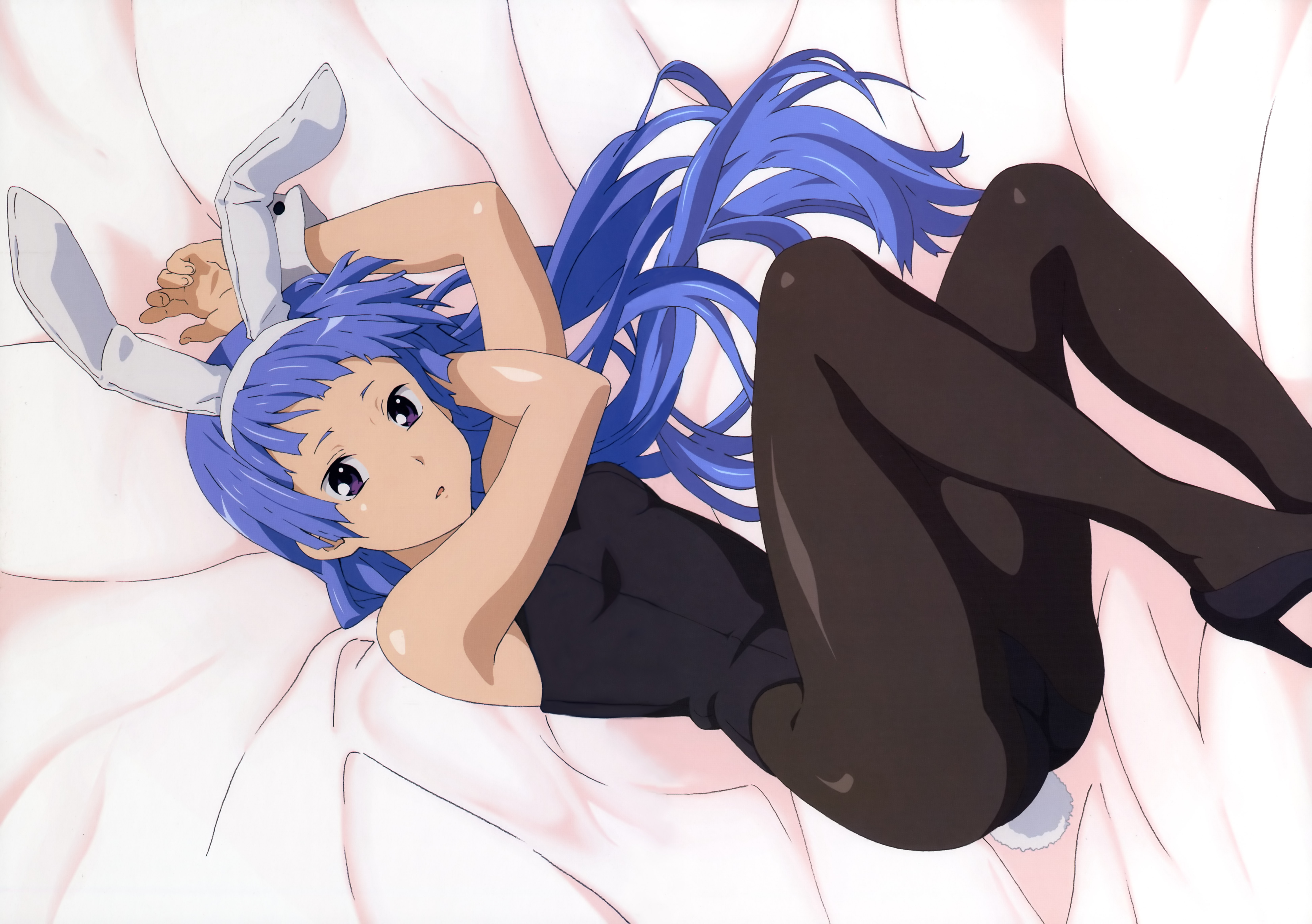 00s1girlanimal earsbedblue hairblunt bangsfake animal earsfemale focushigh heelslong hairlyingon backpantyhoseplayboy bunnypurple eyesrabbit earsshoessolo