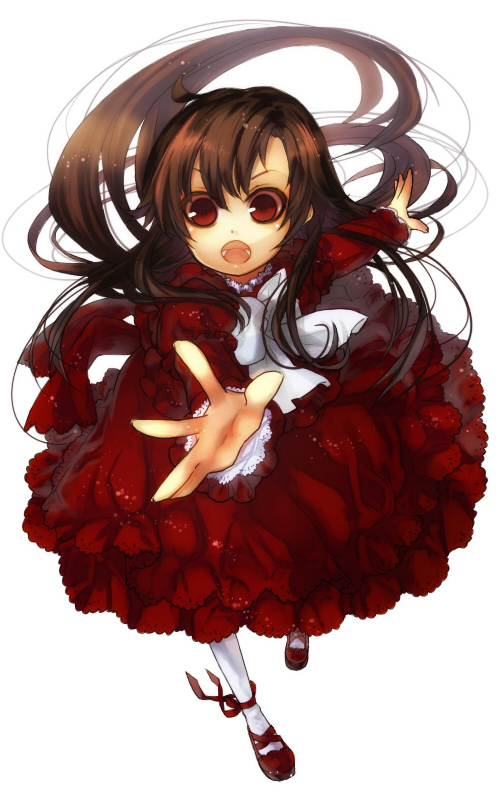 00sblushbrown hairdressfallinglolita fashionlong hairoutstretched armoutstretched handreachingred eyessolo