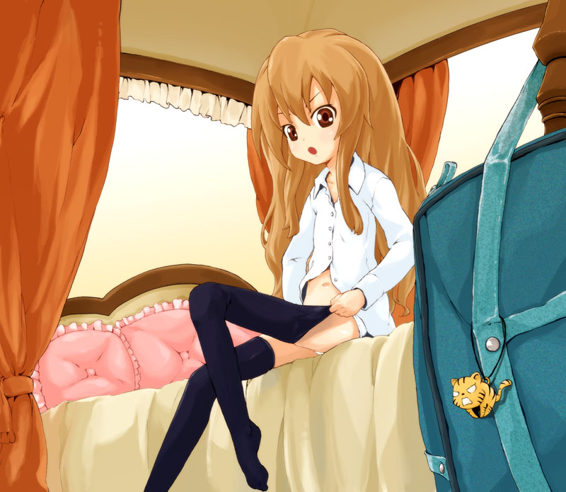 00s1girlbagbedbedroombottomlessbrown eyesbrown haircharm (object)dress shirtdressingfemale focusflat chestfrilled pillowfrillsindoorslong hairnavelno pantsopen mouthpantiespillowshirtsolothighhighsunderwear