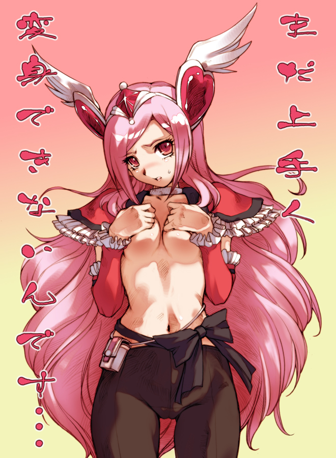 00s1girlblushbottomlessbowbreastscameltoechokercovering breastscovering privatesdetached sleeveseyelashesfemale focusfrillshair ornamenthead wingsheartheart hair ornamentlong hairmagical girlnavelpantyhosepink eyespink hairred eyesribbonsolotopless femalevery long hairwaist bowwhite chokerwings