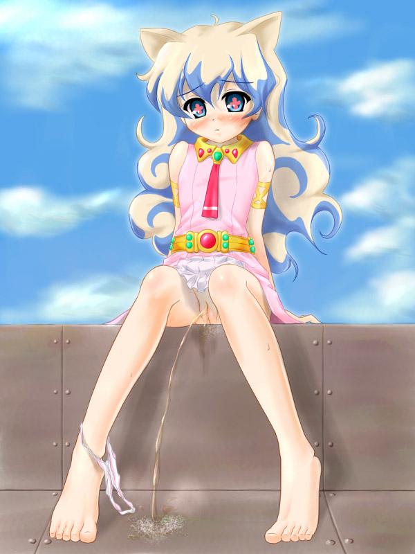 00s1girlanimal earsblue eyesblue hairblushcat earscleft of venusfemale focusflowerhair flowerhair ornamentlolimatching hair/eyespantiespanties around legpeepeeingpussysittingskirtsolouncensoredunderwear