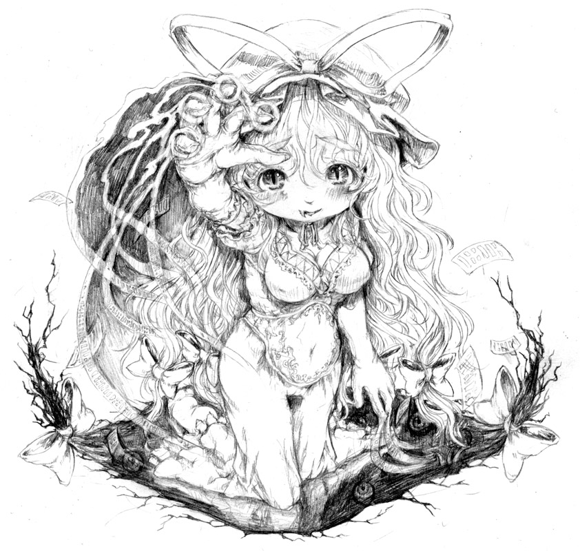 shiro (artist), shiro (hakukosui), flandre scarlet, izayoi sakuya, remilia scarlet, embodiment of scarlet devil, touhou, silver hair, 3girls, barefoot, bat wings, blonde hair, blue hair, blush, braid, feet, female focus, lingerie, maid, multiple girls, nightgown, red eyes, ribbon, short hair, sleeping, twin braids, underwear, wings