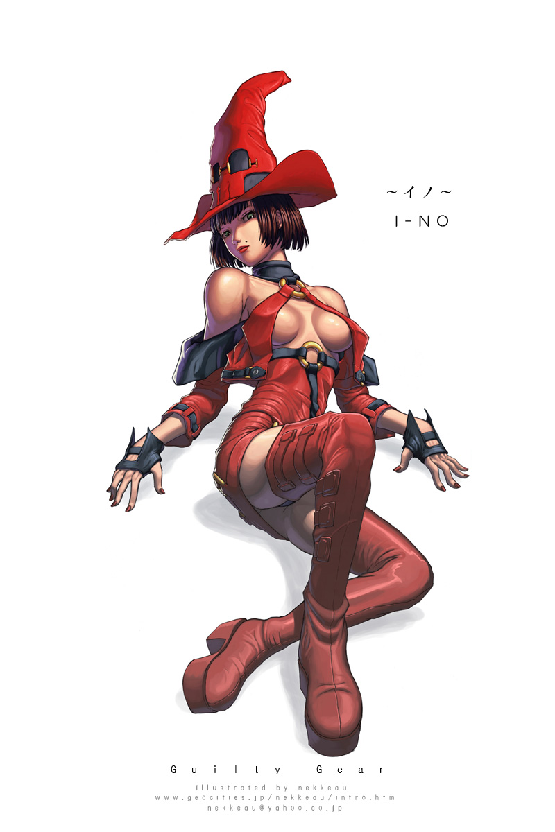 1girlbare shouldersbob cutbootsbreastsbrown hairchokerfemale focusfingerless glovesglovesgreen eyeshatlarge breastslipstickmakeupmolenail polishpantiespantyshotred bootsred hatred nailsred thighhighsshort hairsimple backgroundsittingsolothigh bootsthighhighsunderboobunderwearwitch hatzettai ryouiki
