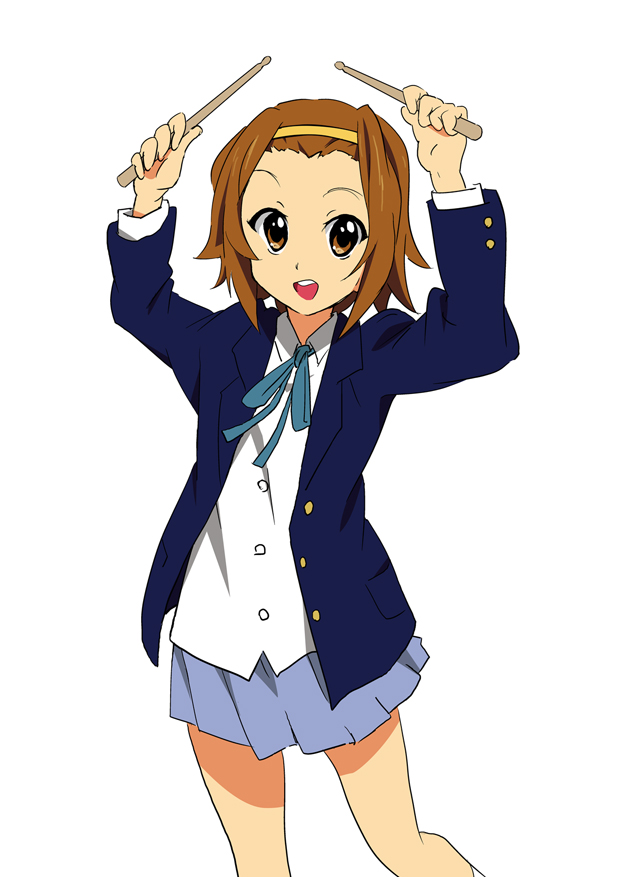 00s1girlbrown eyesbrown hairdrumsticksfemale focushairbandschool uniformshort hairsimple backgroundsolowhite background