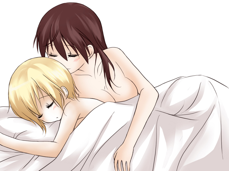 00s2girlsaftersexbedbed sheetblonde hairblushbreastsbrown haircleavageclosed eyescouplecuddlingmedium breastsmorning aftermultiple girlsnaked sheetnudepillowshort hairsleepingunder coversyuri