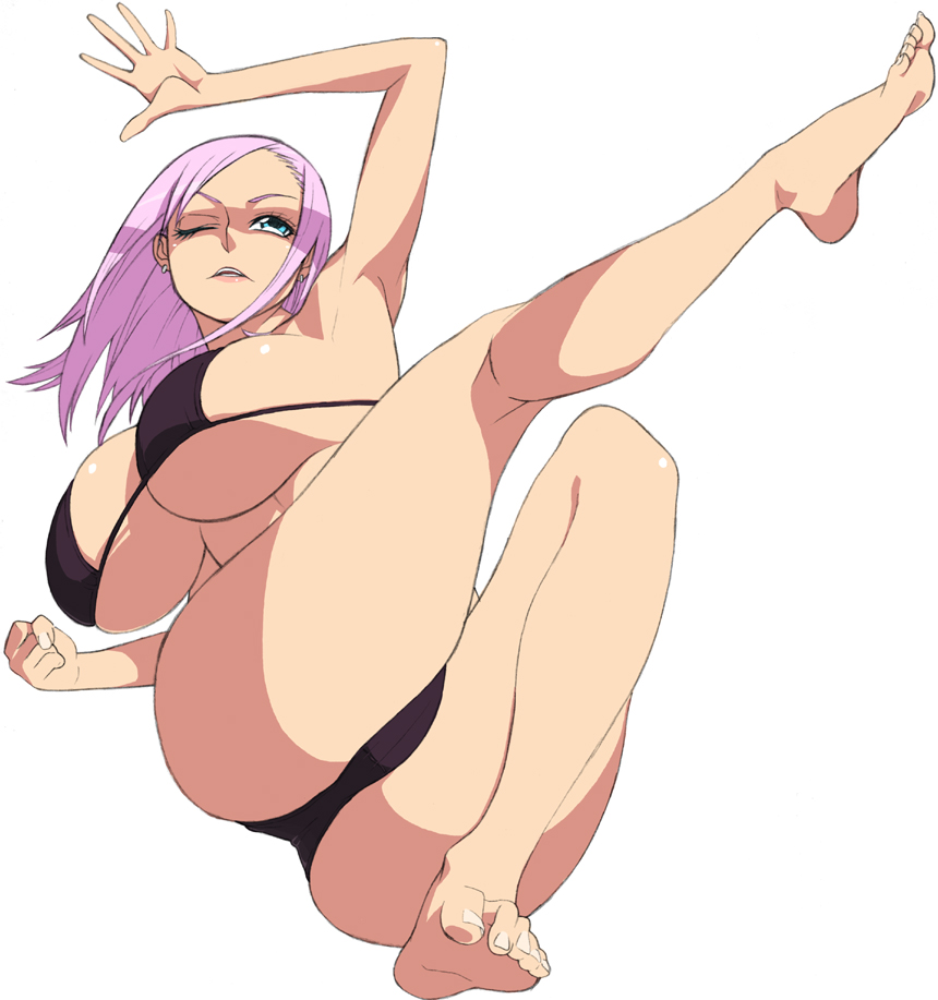 1girlbarefootbikiniblack bikiniblue eyesbreastsfeetfemale focusfoot focushuge breastslong hairone eye closedpink hairsolessoloswimsuittoesunderboobwink