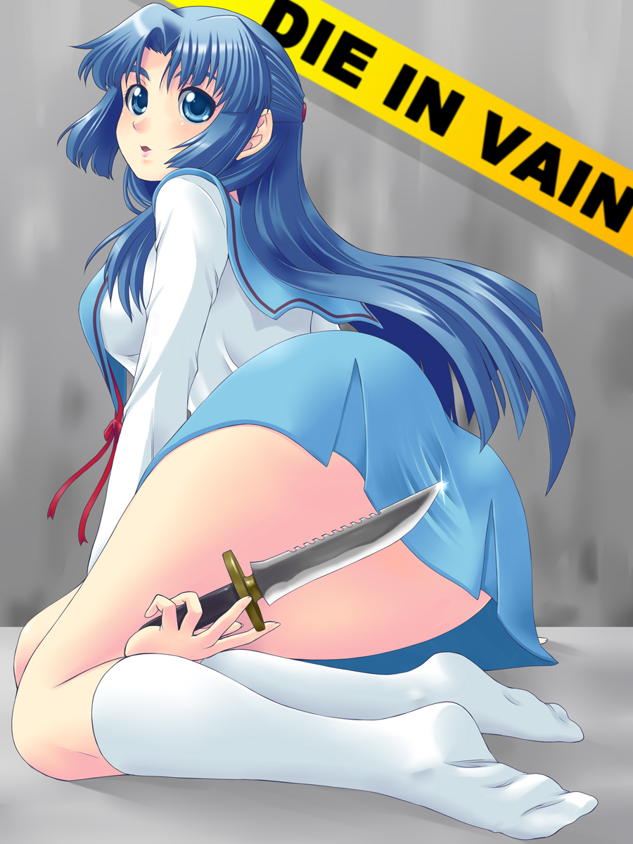 00s1girlassbare legsblue eyesblue hairbreastscolored eyelashesconvenient censoringfeetfemale focushalf updoknifelong hairlong sleevesmatching hair/eyesmedium breastsminiskirtschool uniformserafukuskirtsockssolovery long hair