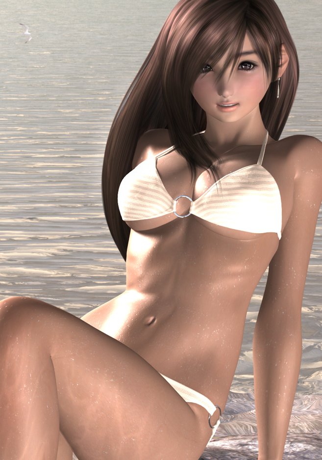 1990s (style)1girl3dbikinibreastsbrown eyesbrown haircleavageearringsfemale focusjewelrylong hairo-ringo-ring bottomo-ring topretro artstylesoloswimsuitunderboobwaterwetwhite bikini