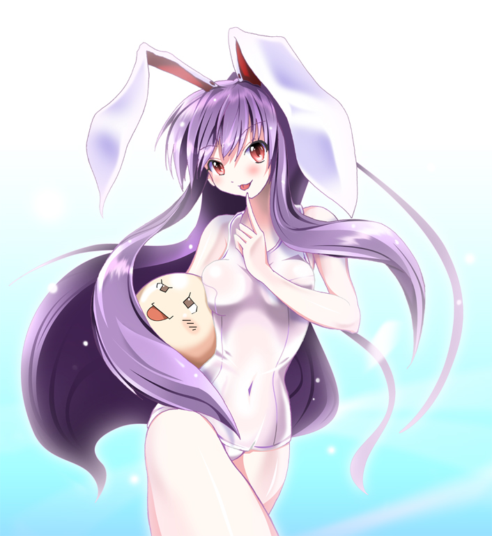 1girlanimal earsbreastsfemale focusgradient backgroundone-piece swimsuitrabbit earsschool swimsuitsoloswimsuitwhite backgroundwhite one-piece swimsuitwhite school swimsuityukkuri shiteitte ne
