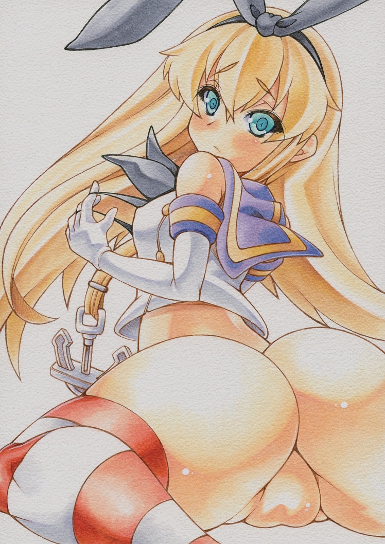 animal ears, brown hair, fish, japanese clothes, pink eyes, solo, thighhighs, water