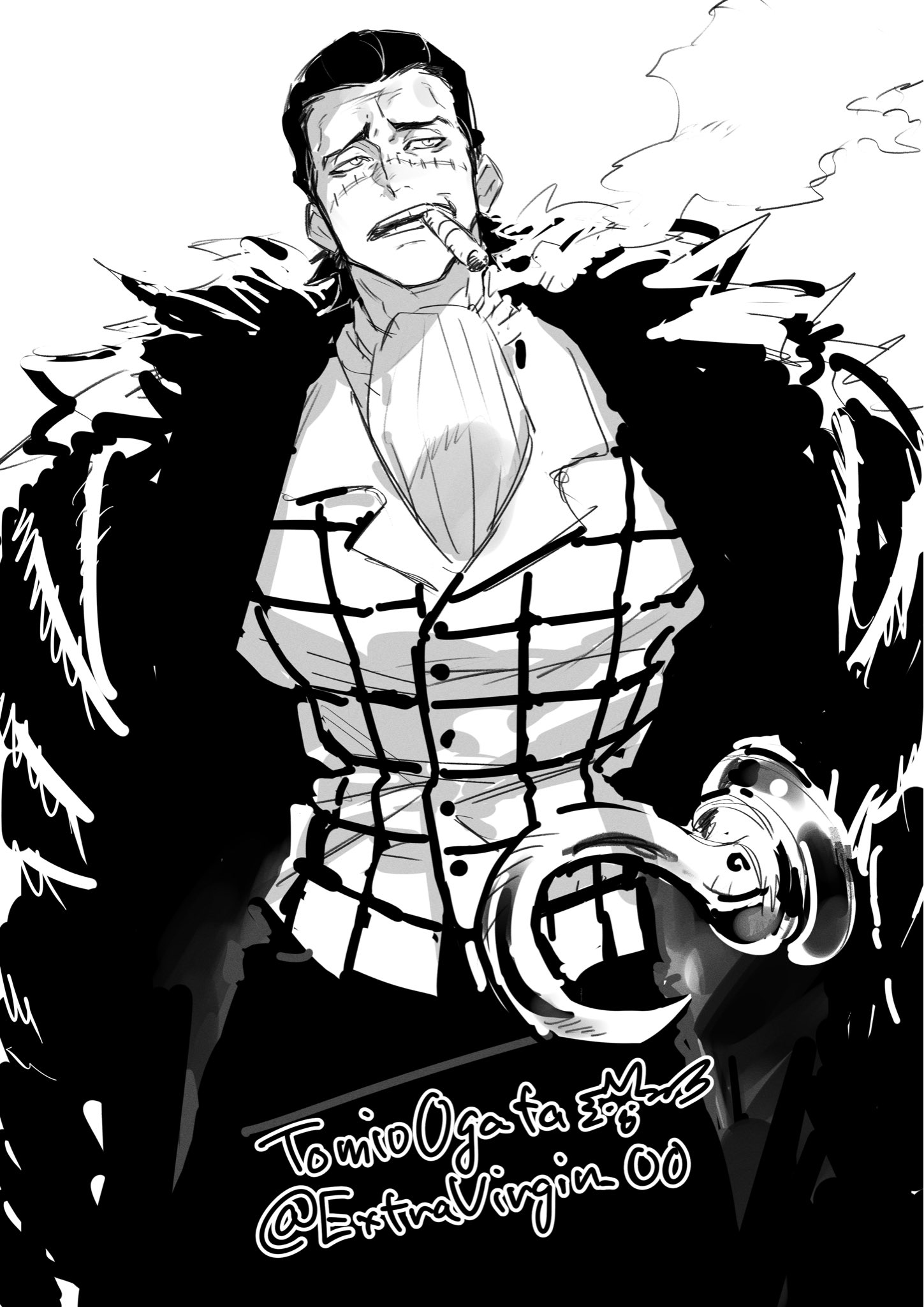 1boyartist nameascotcigarcoatcowboy shotfur coatgreyscalehair slicked backhook handlapelsmale focusmonochromenotched lapelsopen mouthpantspatterned clothingscarscar on faceshirtsmokesmokingsolostandingteethtwitter usernamewhite background