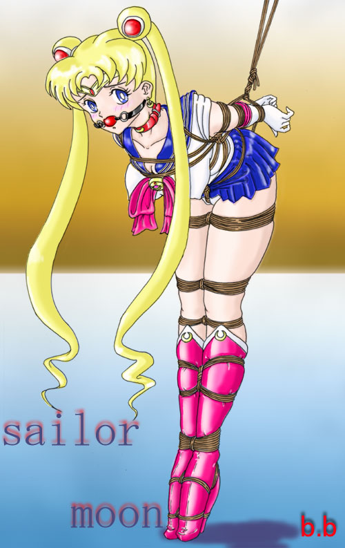1990s (style)1girlball gagbdsmblonde hairblue eyesbondagebootsboundgaggaggedretro artstyleropetwintails