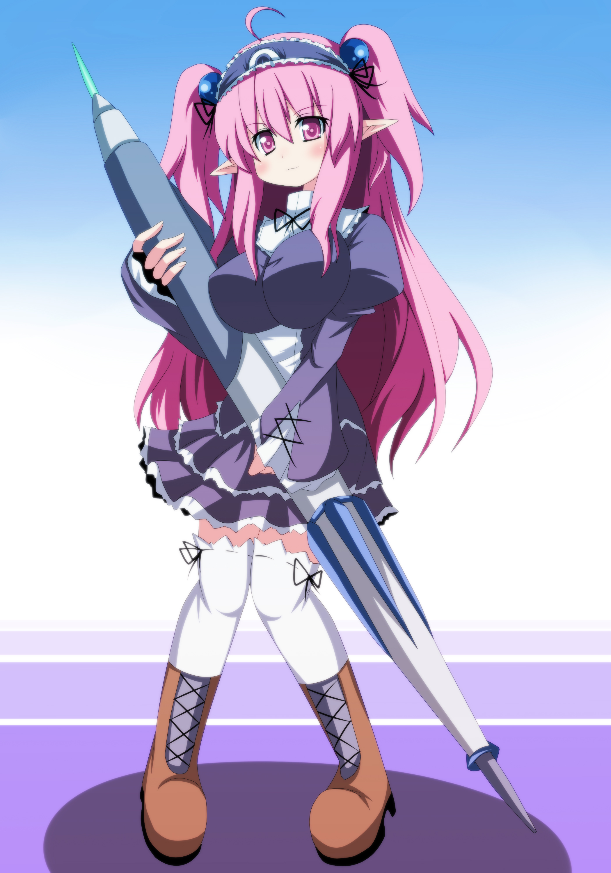 ahogebootsbreastsdresselfgothic lolitahairbandlarge breastslolita fashionlong hairpink hairpointy earsthighhighstwintailszettai ryouiki