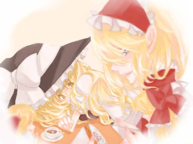2girlsblonde hairblue eyescupfemale focushairbandhatlong hairmultiple girlssewingshort hairteacupwitchwitch hatyellow eyes