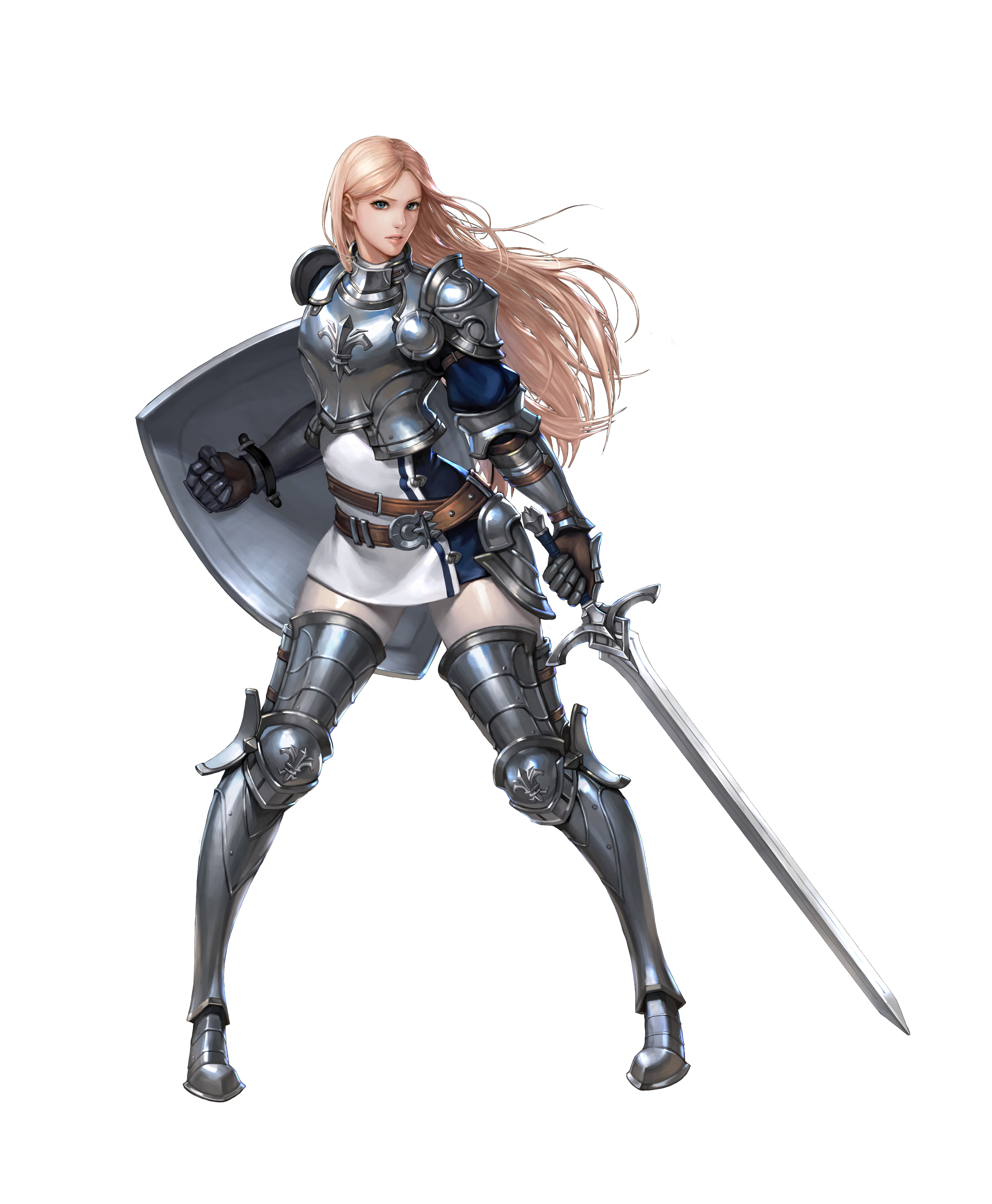 1girlarmorarmored bootsarmored glovesbeltbelt buckleblonde hairblue eyesbootsbreastplatebucklefleur-de-lisgauntletsholdingholding swordholding weaponknightleather beltlong hairshieldshoulder armorsoloswordtower shieldtransparent backgroundvery long hairweaponye-lim chae