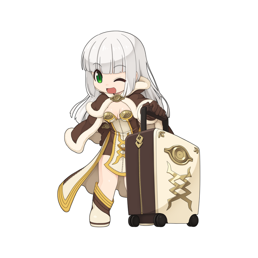 asanuma, fantasy earth zero, silver hair, bad id, bad pixiv id, 1girl, breasts, cleavage, fang, female focus, hood, huge breasts, popped collar, solo, yellow eyes