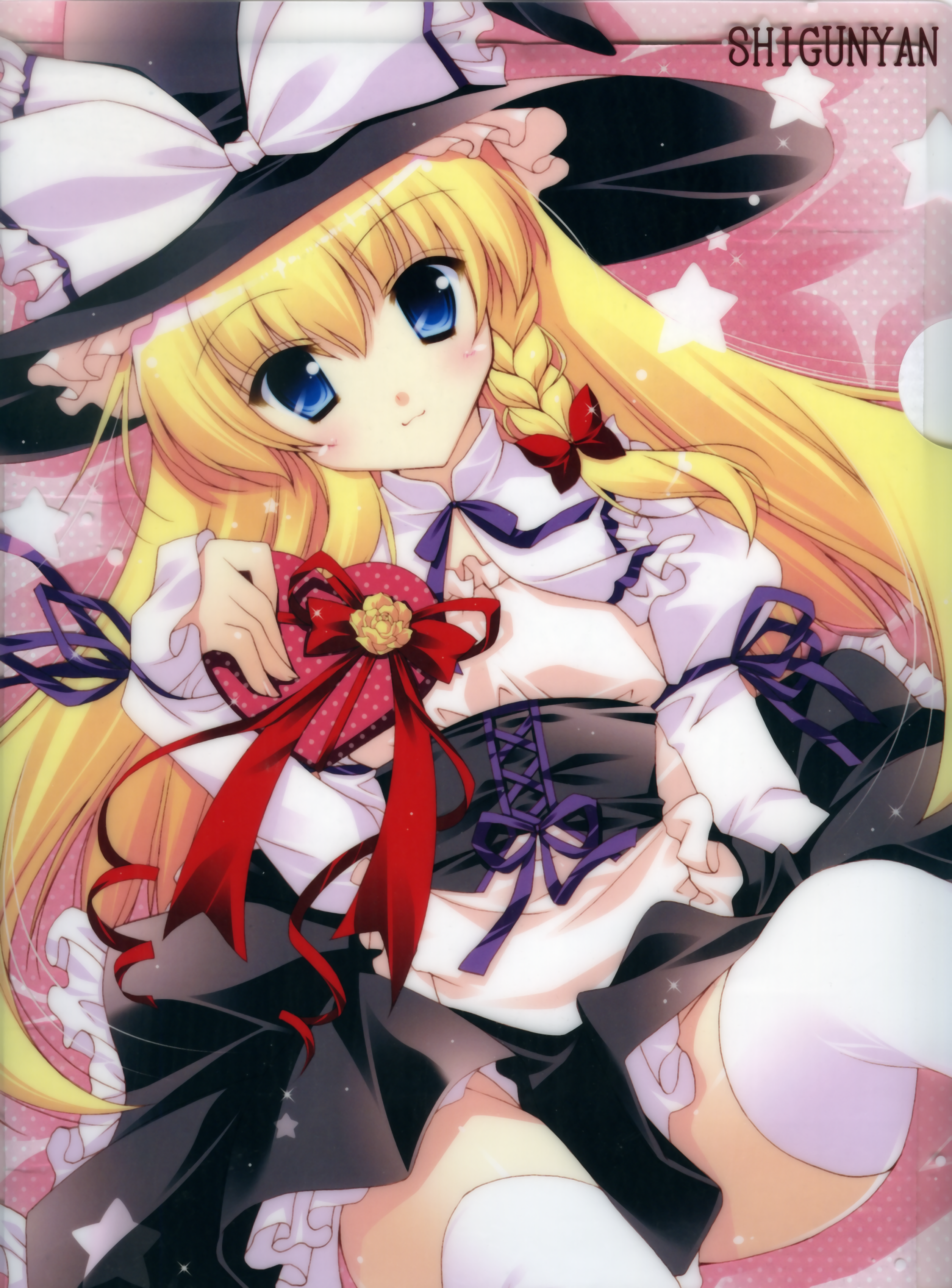 :31girlblonde hairblue eyesblushbraidfemale focusgifthatheartno pantiesribbonsolothighhighsvalentinewhite thighhighswitch hat