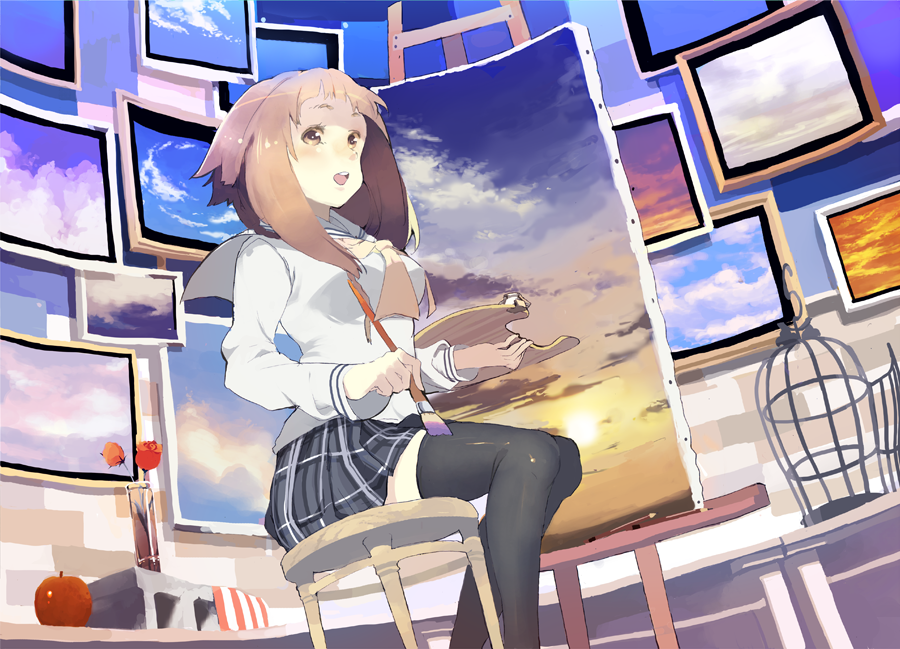 cpt, ikeda (cpt), natsuki kruger, shizuru viola, my-otome, 00s, 2girls, blue hair, book, brown eyes, brown hair, ear cleaning, green eyes, lap pillow, long hair, long sleeves, lying, meister otome uniform, midriff, mimikaki, multiple girls, navel, oekaki, on side, open book, reading, sitting, skirt
