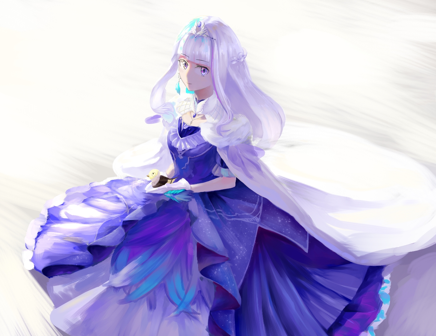 1girlanimalbirdblue dressblunt bangsbraidbreastscloakclosed mouthclothed animaldressearringsfeather earringsfeathersfull bodyfur trimfur-trimmed cloakgloveshalf up braidholdingholding animalholding birdjewelrylong dresslong hairlong sidelockslooking at viewermonoclemulticolored hairown hands togetherprincesspurple eyespurple hairshort sleevessidelockssilver tiarasingle earringsittingsmall breastssmilesolo focusstreaked hairtwo-tone hairvirtual youtuberwhite backgroundwhite cloakwhite gloveswhite hair