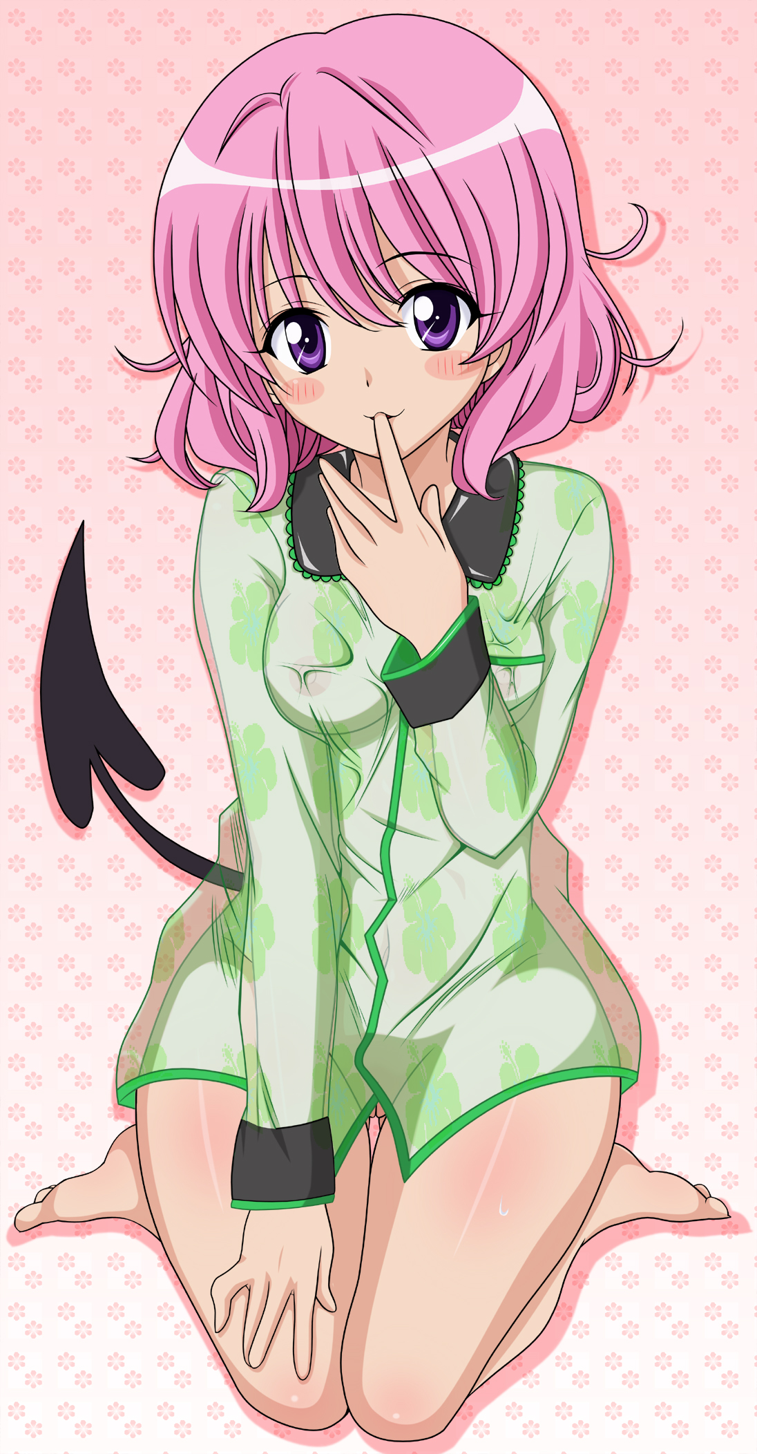 00s1girlbarefootblouseblushbottomlessbreastsfeetfemale focusfull bodygreen shirthip focuskneelingmessy hairnipplesno pantiespajamaspink hairpurple eyespussypussy peeksee-through clothesshirtshort hairsittingsolotailuncensoredwarizawide hips