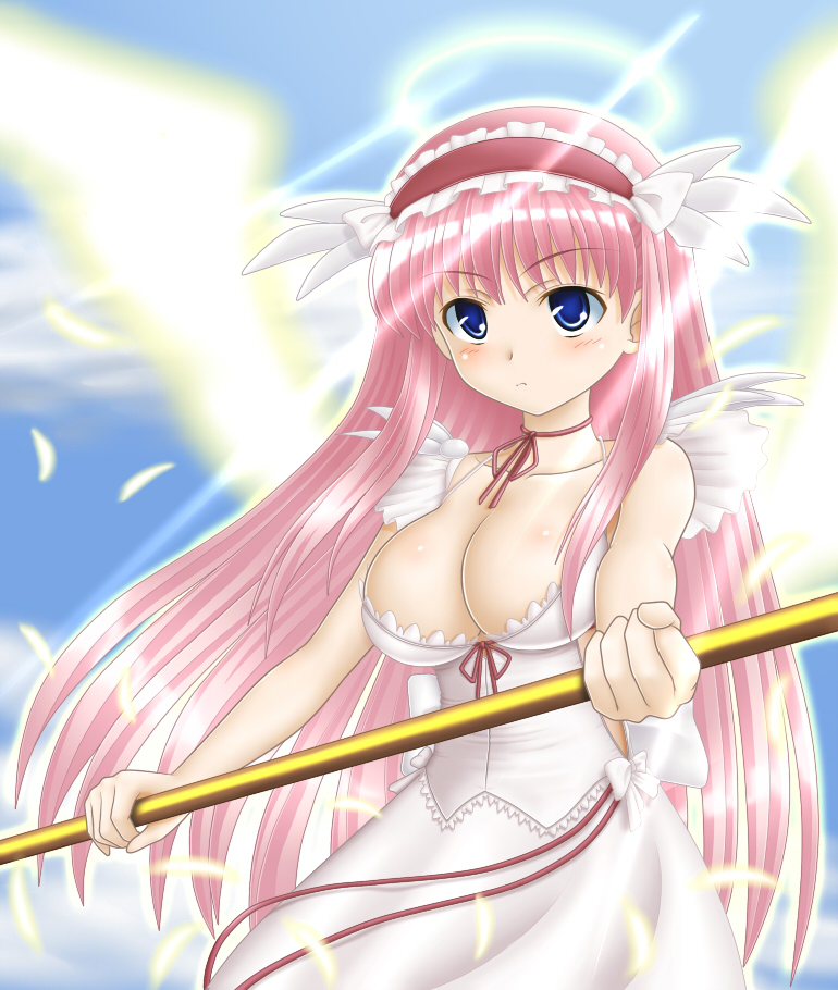 00sangelblue eyesblushbreastscleavagehairbandhalolarge breastslong hairneck ribbonpink hairribbonsolowings