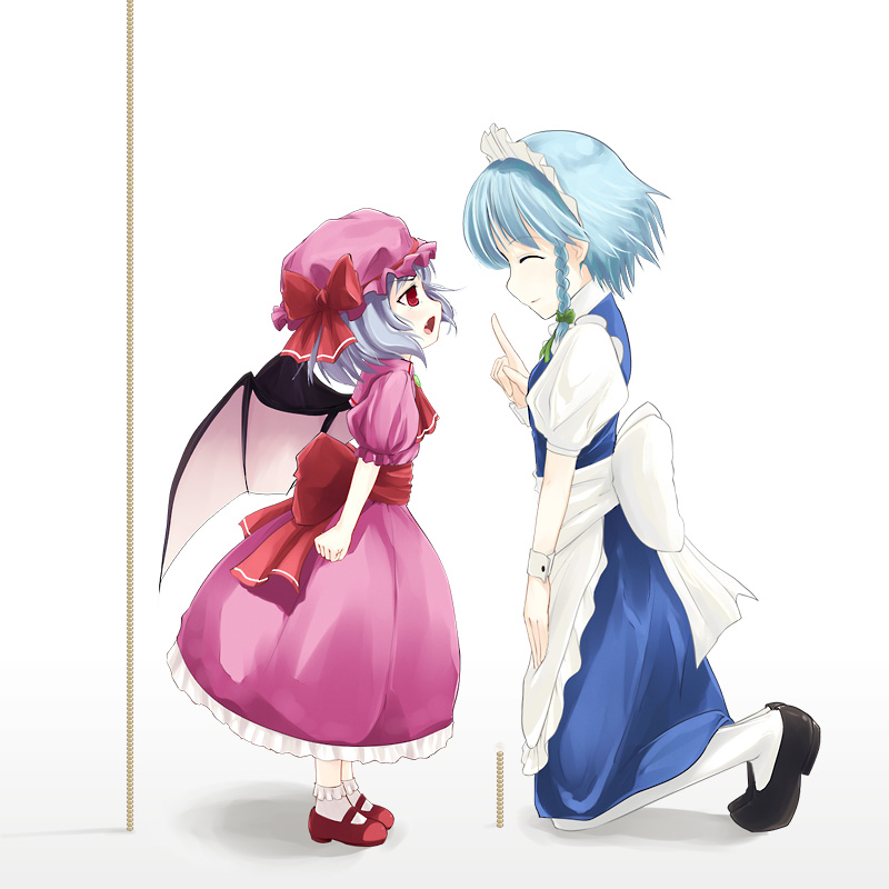 2girlsbat wingsblue eyesbraidchildfemale focushatkneelingmary janesmultiple girlspantyhosered eyesshoesshort hairtwin braidswings