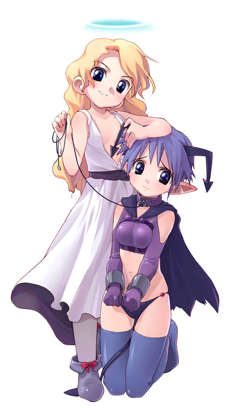 2girlsangelangel and devilbdsmblonde hairblue eyesbreastscameltoecollarcuffsdemondemon girlfemdomfull bodyhalokodomo doushileashlolilolidomlong hairmasochismmultiple girlsoppai lolipointy earspurple eyespurple hairsexually suggestiveshacklesshort hairtailthighhighsyuri