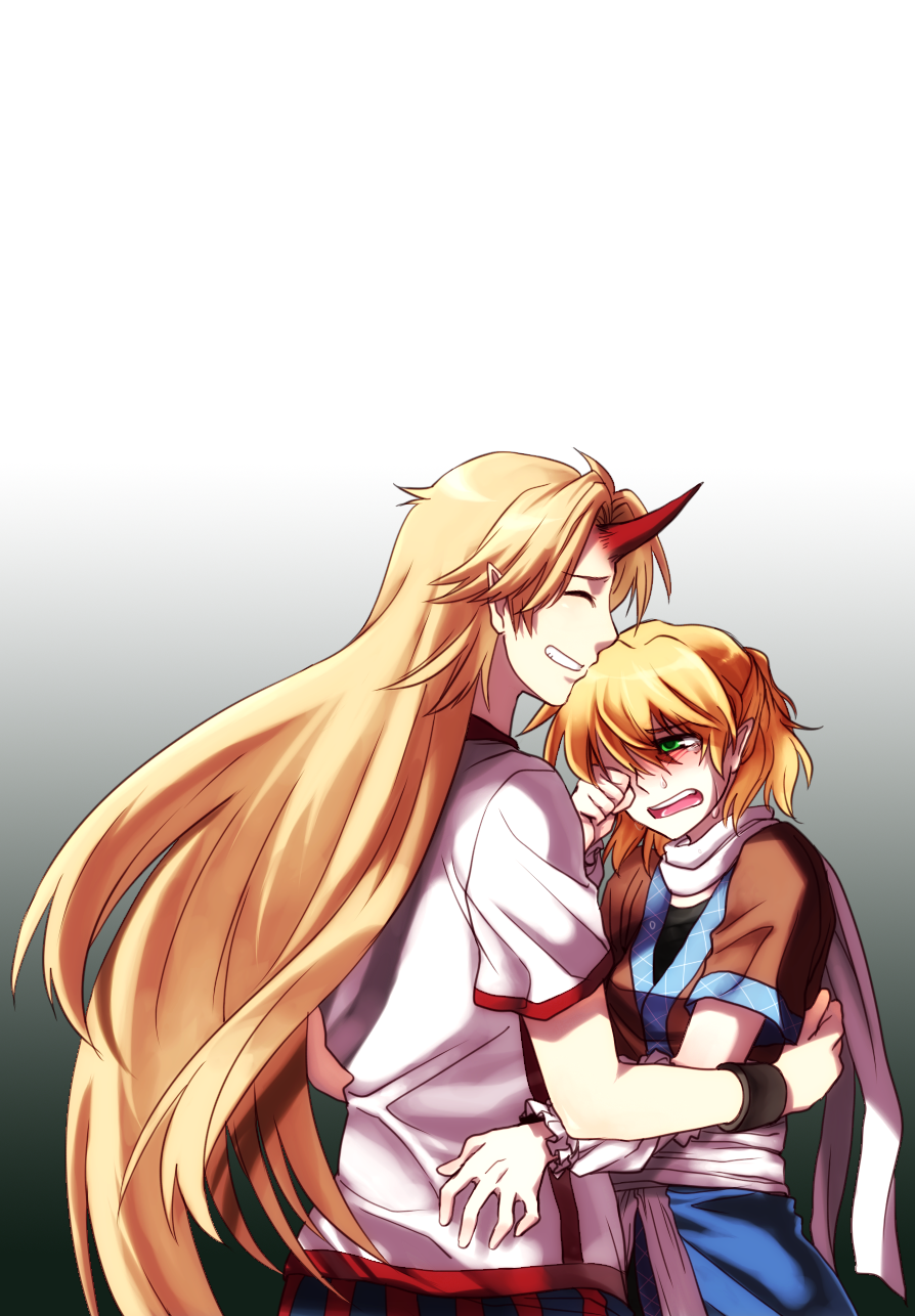 2girlsarm warmersblonde hairfemale focusgreen eyeshornslong hairmultiple girlspointy earsscarfshort hairtears