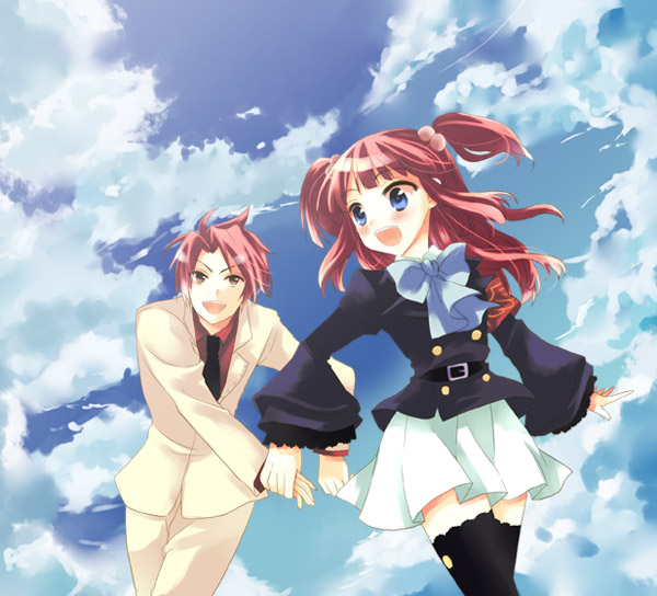 uine (bobhairshuki), kuze shizuka, takopii no genzai, highres, 1girl, alien, black hair, black skirt, blush, bow, bowtie, brown eyes, brown jacket, collared shirt, creature, hands in pockets, jacket, looking at creature, medium hair, octopus, red bow, red bowtie, shirt, simple background, skirt, solo, vest, white background, white shirt, yellow vest