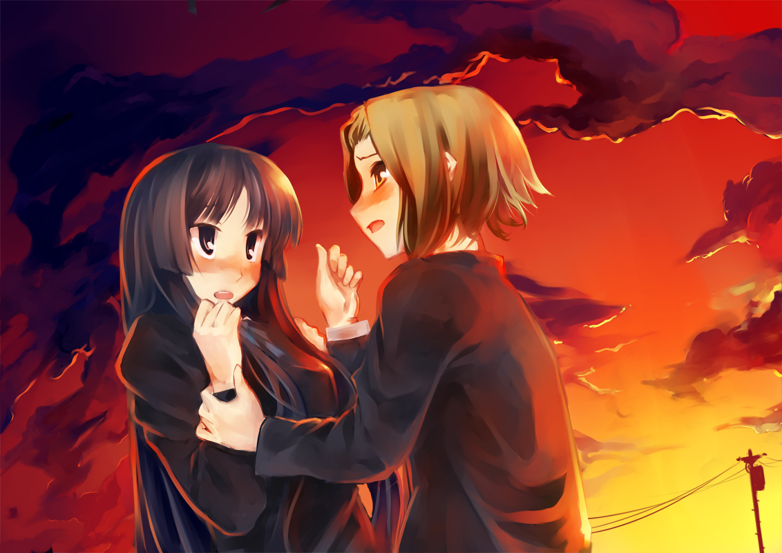 00s2girlsblack eyesblack hairblushbrown eyesbrown hairmultiple girlsschool uniformshort hairyuri