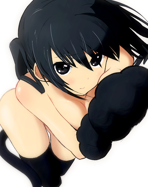 00s1girlanimal handsblack eyesblack hairblushbreastscat pawscat tailcleavagefemale focuslarge breastsnudesmilesolotailthighhighs