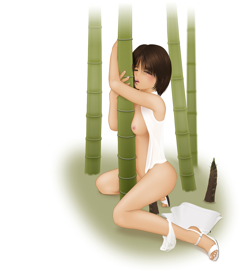 bamboobamboo shootblushbreastsbrown eyesbrown hairfemaleFlag for Deletionhigh heelslooking at viewermasturbationnipplesoutdoorsshort hairsolo