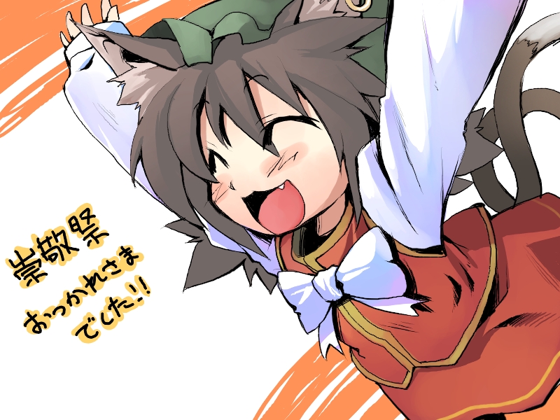 1girlanimal earsbrown haircat earscat girlcat tailclosed eyesearringsfangfemale focushatjewelrymob capmultiple tailsshort hairsolotail