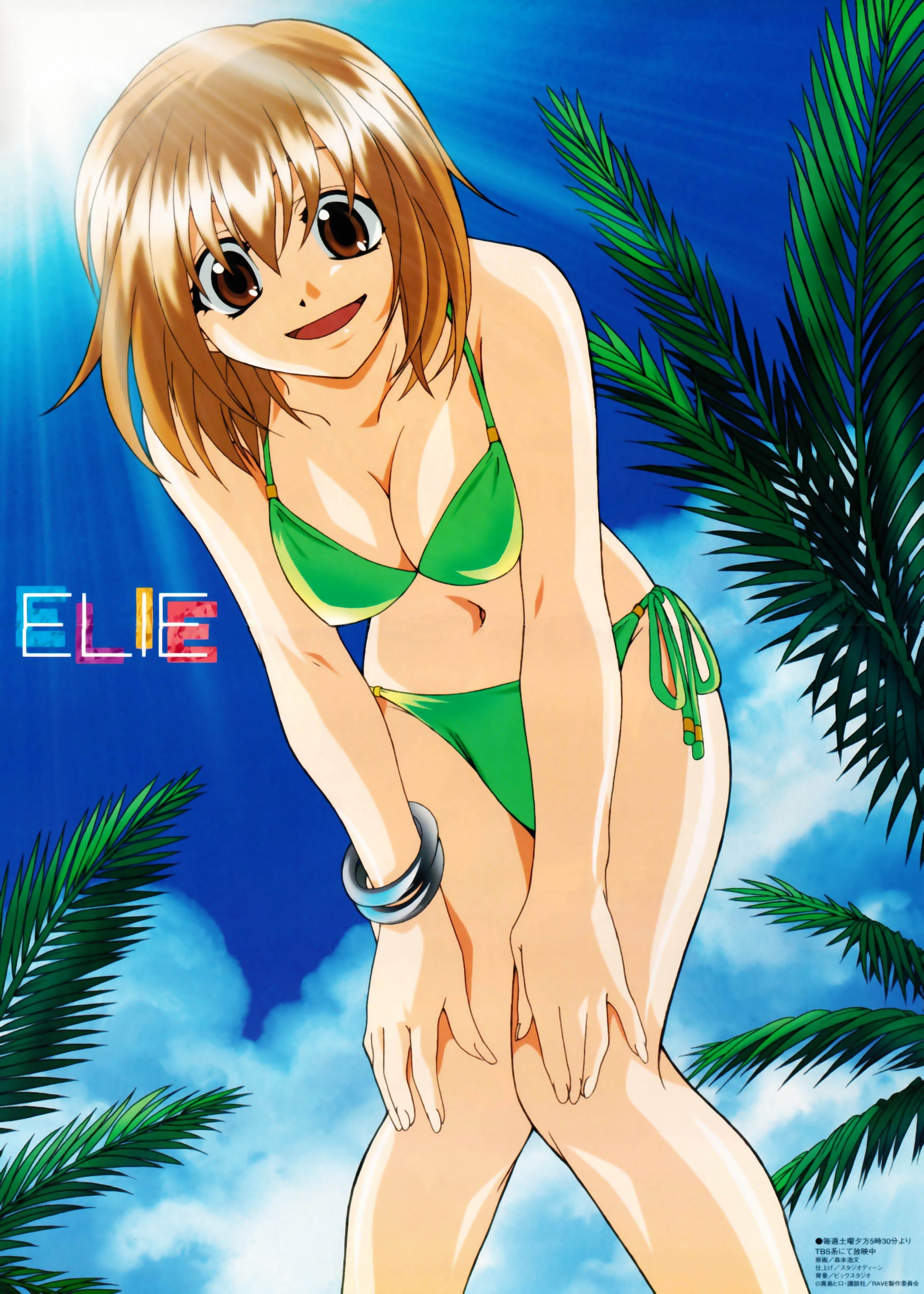 :d00s1girlbikinibraceletbreastsbrown eyesbrown haircleavageclouddayfemale focusfrom belowgreen bikinihair between eyeshands on own kneesjewelrylarge breastsleafleaning forwardlegslight rayslooking at viewernavelopen mouthoutdoorsshort hairside-tie bikini bottomskysmilesolostandingsunsunbeamsunlightswimsuit