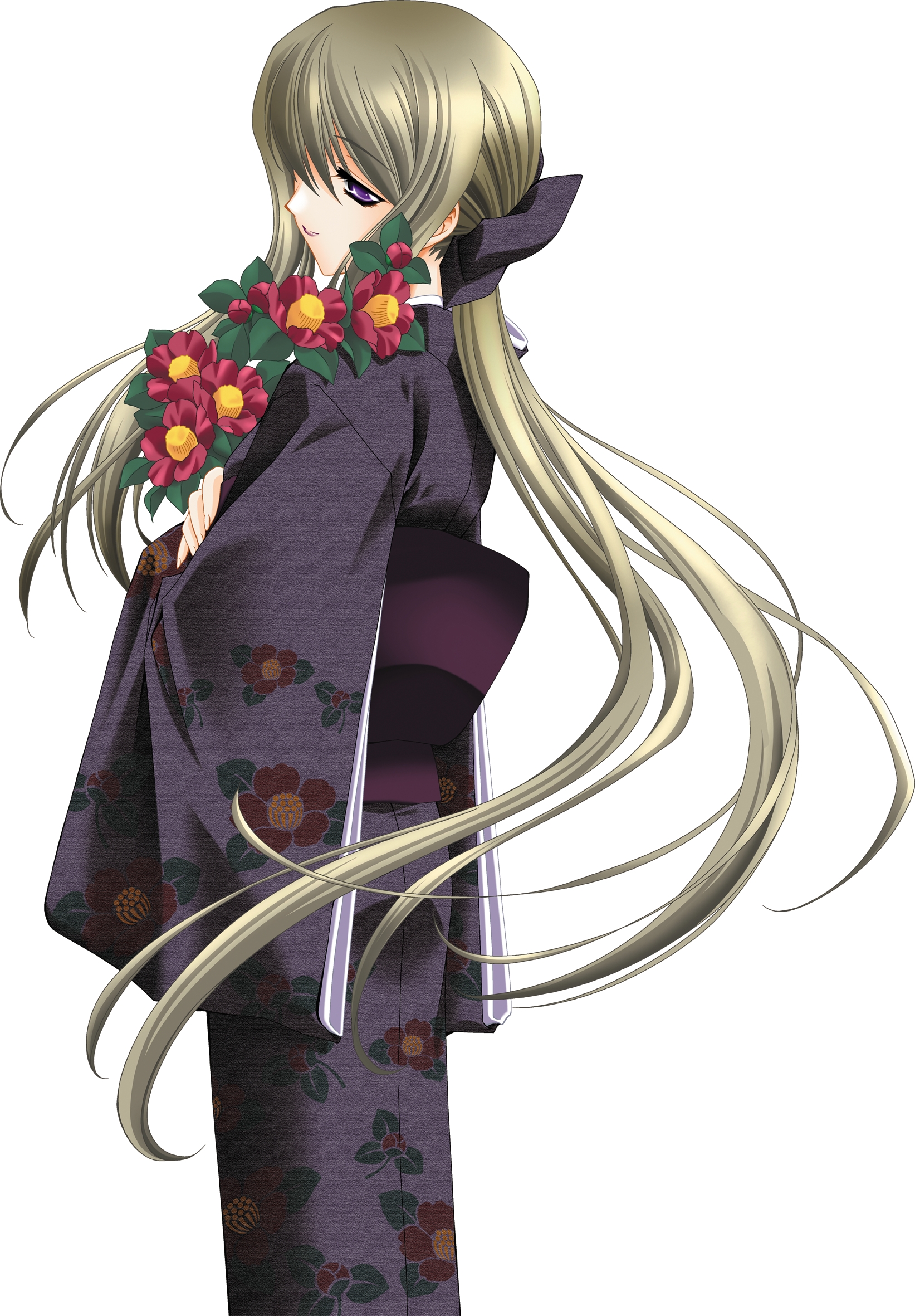 00s1girlbrown haircamelliacamellia printfemale focusfloral printflowerhair ribbonjapanese clotheskimonolong hairmature femalepurple eyesribbonsolo