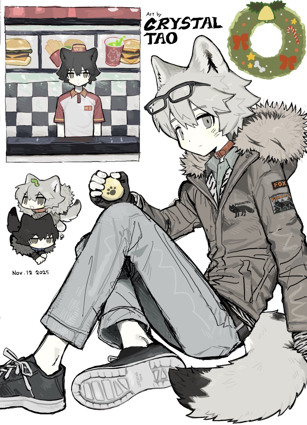 hrk (dxez4457), indie virtual youtuber, absurdres, commentary request, commission, highres, skeb commission, 1girl, :d, animal, animal ears, arm up, badge, black bra, black shoes, black skirt, blonde hair, bra, braid, breasts, brown pantyhose, cleavage, collar, collared shirt, crossed bangs, fingernails, fox ears, fox girl, fox tail, full body, glasses, green eyes, hair ornament, high heels, konoobi (vtuber), large breasts, long hair, looking at viewer, miniskirt, nail polish, open mouth, pantyhose, see-through clothes, see-through shirt, seiza, shirt, shoes, short sleeves, simple background, single braid, sitting, skirt, smile, solo, tail, underwear, white background, white collar, x hair ornament, yellow nails
