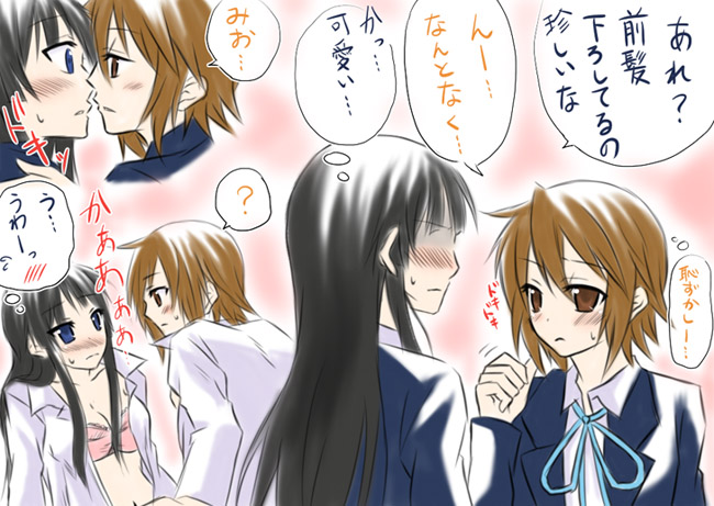 00s2girlsalternate hairstyleblack hairblue eyesbrabrown eyesbrown hairhair downlingeriemultiple girlspink braschool uniformunderwearyuri