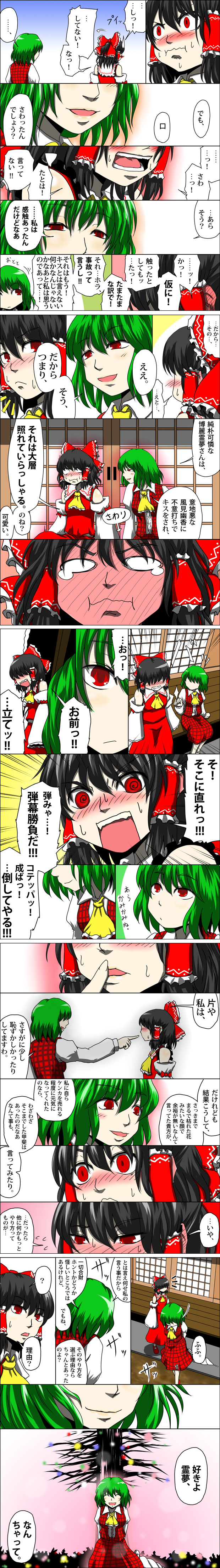 :i1boy2girlsangryascotblack hairblushbowclosed umbrellacomicconfessiondetached sleevesembarrassedfemale focusgreen hairhair bowhair tubesjapanese clothesmikomultiple girlsplaid clothesplaid skirtplaid vestred eyesshort hairskirtskirt setteardroptearsumbrellavestwavy mouthyuri