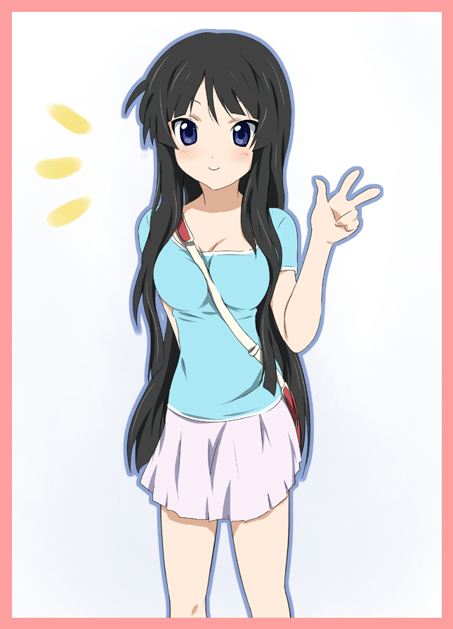 00s1girlbagbetween breastsblack hairblue eyesblushbreastscasualfemale focushandbaglong hairsolostrapstrap between breastsv