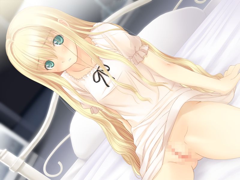 blonde hairblushbottomlessclitorisdutch angleFlag for Deletionflat chestgreen eyessinvitationlong hairno pantiesribbonsittingsoloupset