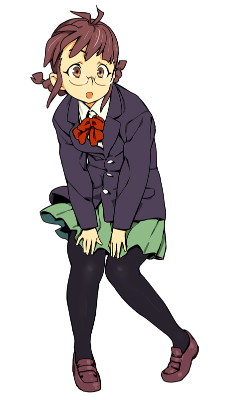 00s1girlblazerbraidbrown hairfemale focusfull bodyglassesjacketpantyhoseschool uniformsimple backgroundskirtsolowhite backgroundwind