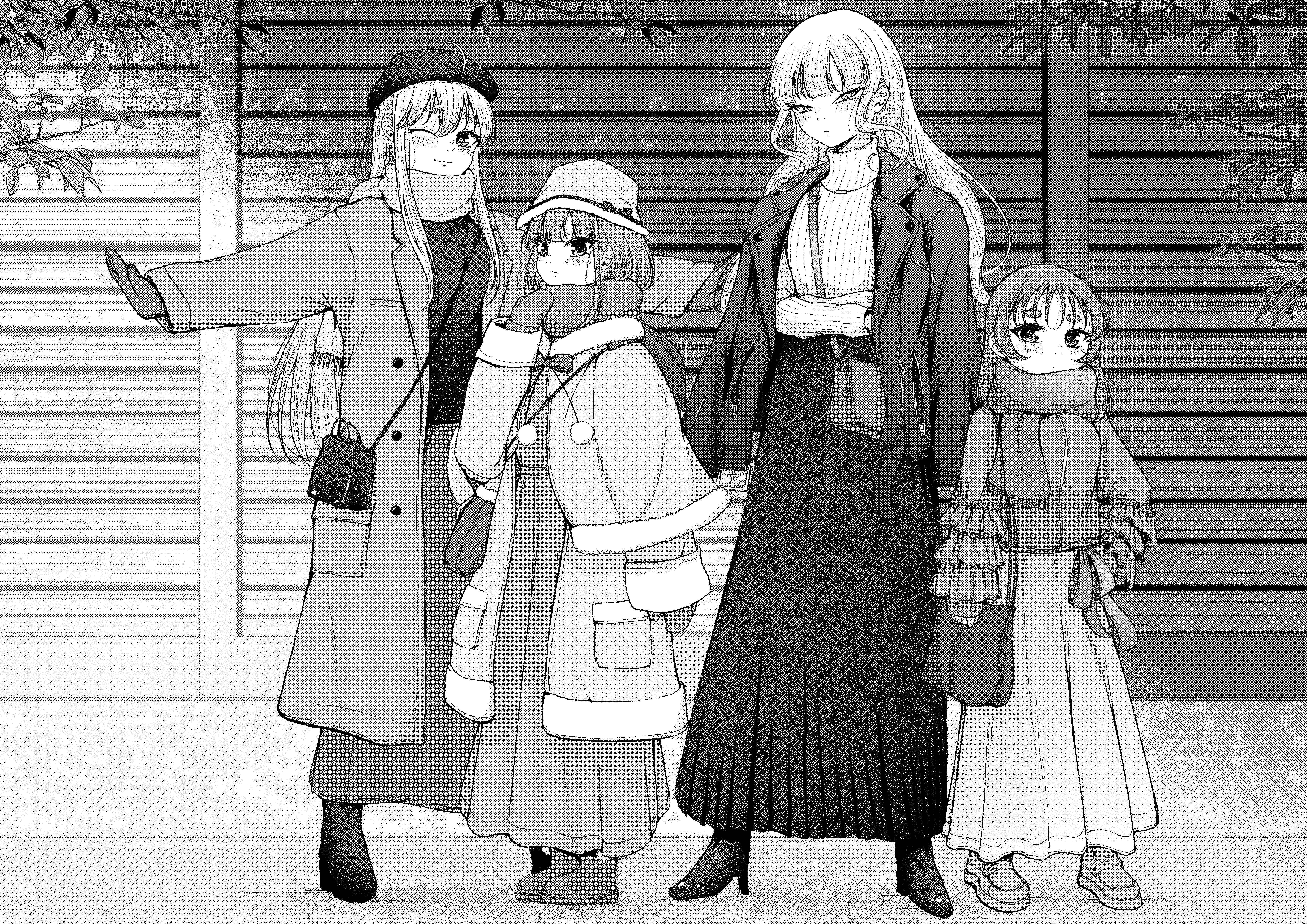 emiya shirou, king crimson (stand), matou sakura, fate/stay night, fate (series), jojo no kimyou na bouken, vento aureo, derivative work, 1boy, araki hirohiko (style), blood, comic panel redraw, greyscale, monochrome, parody, raglan sleeves, stand (jojo), style parody