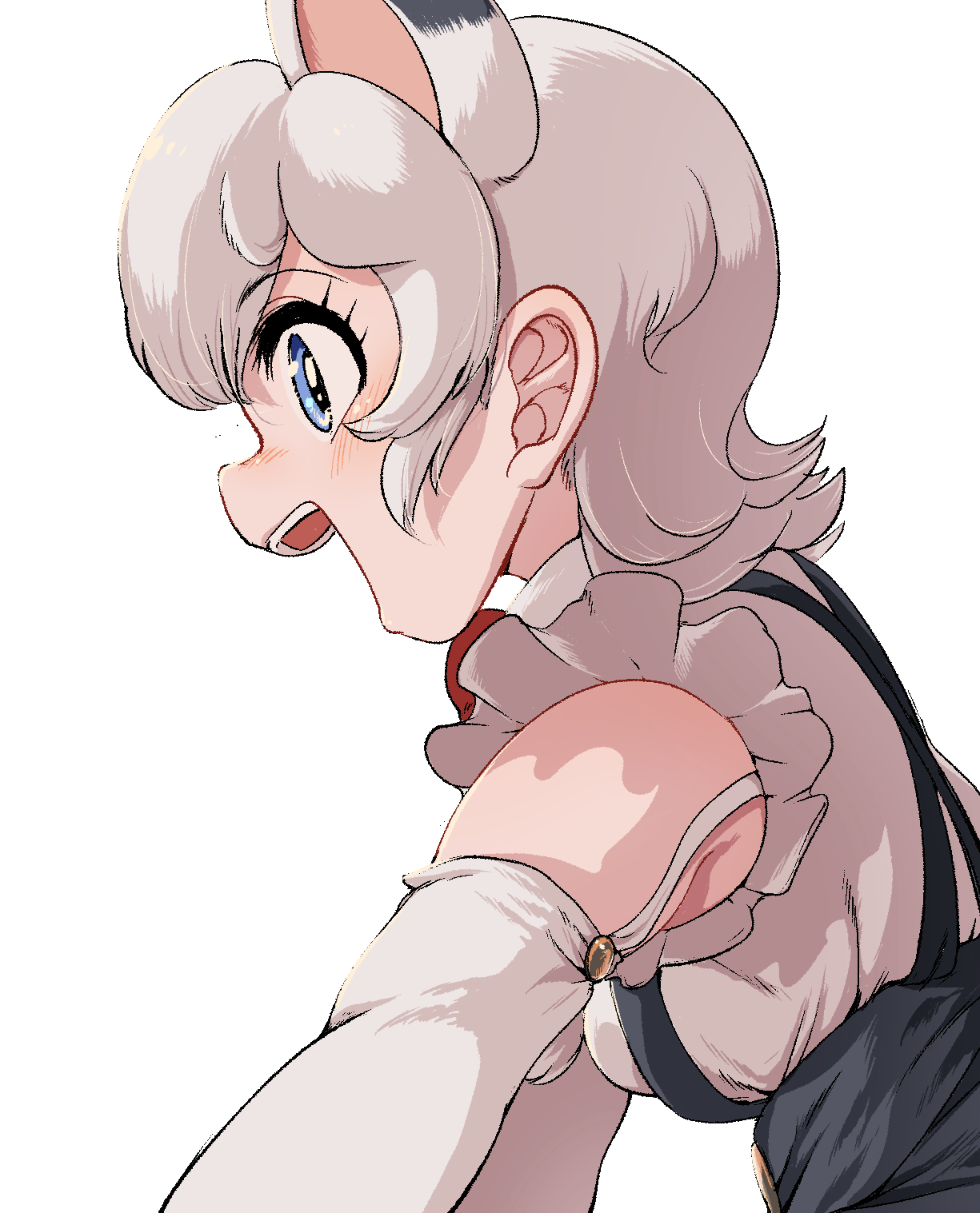 1girlanimal earsarmpitsblue eyesbowbowtieelbow glovesextra earsgarter strapsgloveslion earslion girlopen mouthshirtshort hairsimple backgroundskirtsleevelesssleeveless shirtsolosuspendersupper bodywhite gloveswhite hairwhite shirt
