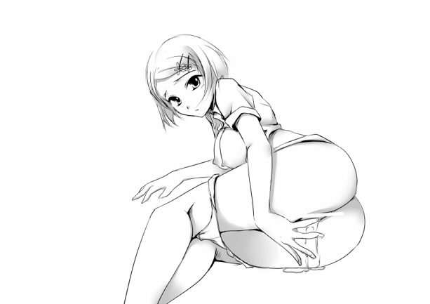 1girlcensoredclothes liftfemale focusfemale masturbationgreyscalehair ornamenthairclipmasturbationmonochromepantiespussyshirt liftshort hairsolothongunderwear