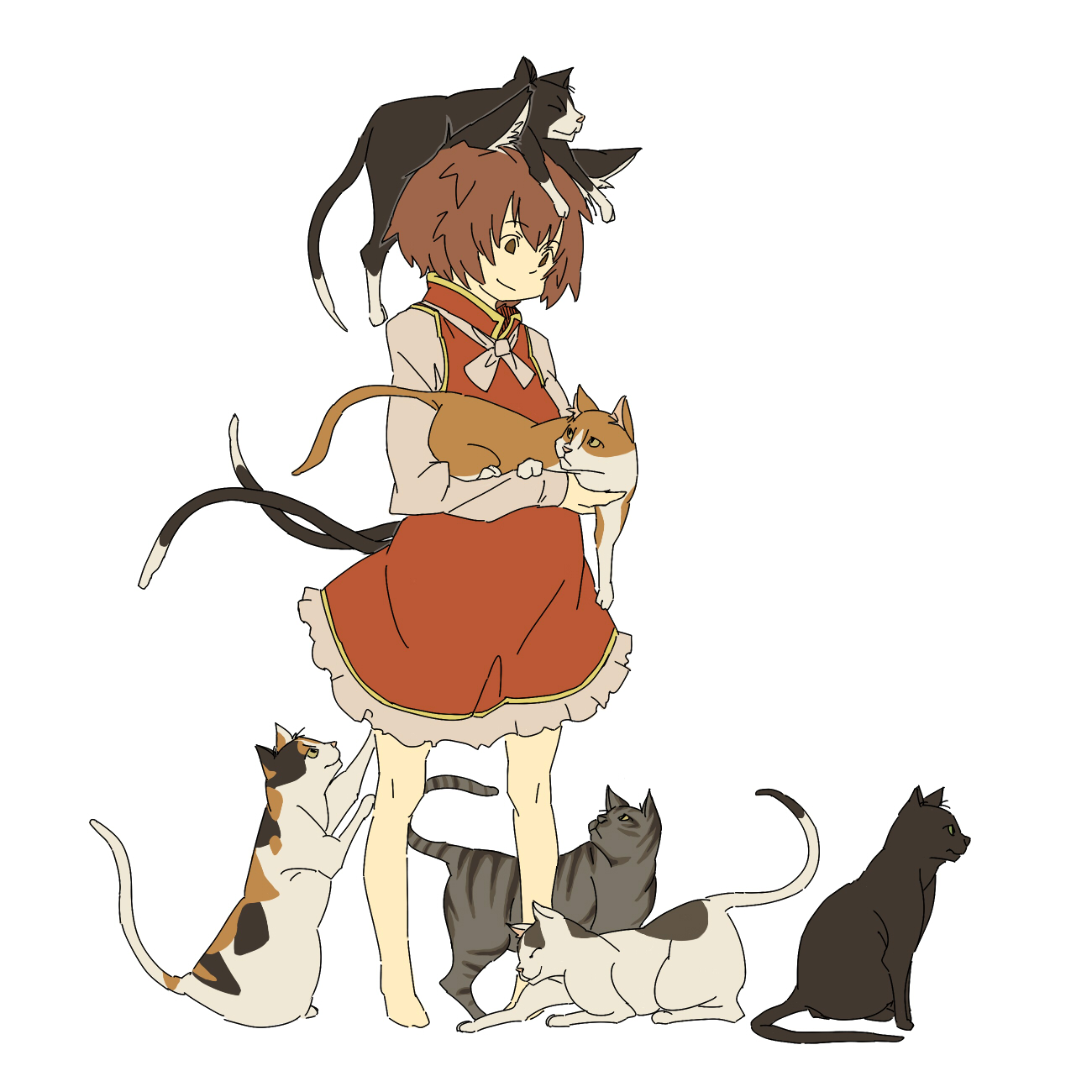 b-ginga, original, 1girl, ankle boots, autumn leaves, black thighhighs, boots, brown boots, female focus, full body, japanese clothes, kimono, leaf, long hair, simple background, solo, standing, symbol-shaped pupils, thighhighs, yellow background, zettai ryouiki
